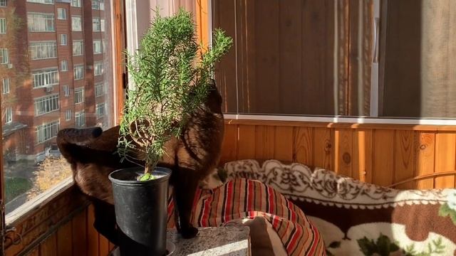 Максику очень понравился кустик розмарина 🐈