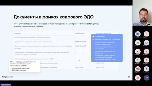 Сергей Сайганов, СЕО Comply.Consent, о базовых знаниях, которые кадровому специалисту надо получить до внедрения кадрового электронного документооборота. Узнать подробнее о КЭДО Comply.Consent и запросить демонстрацию функционала - https://consent.comply.ru/ 00:00 Вступление 02:42 Обзор законодательства и изменения в 2022-2023 годах 12:06 Выбор ЭП работника 20:21 Документы в рамках кадрового ЭДО 25:10 Внутренняя обвязка КЭДО 38:30 Чек-лист формальностей при внедрении КЭДО 39:00 Риски несоблюдения требований 42:30 Как Comply.Consent работает с этими задачами 44:05 Вопросы и ответы