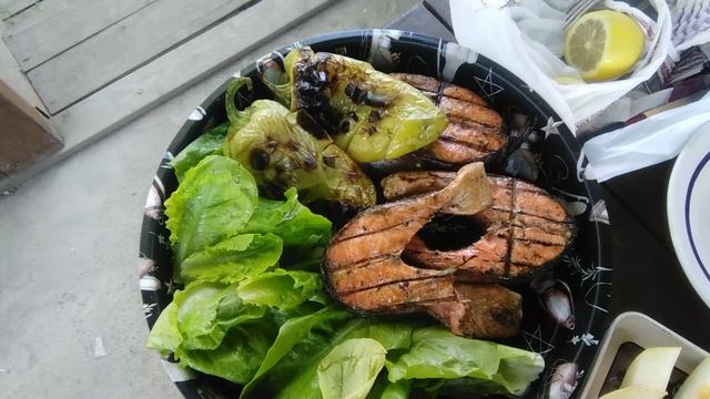Готовим горбушу с овощами на углях к вечернему ужину.