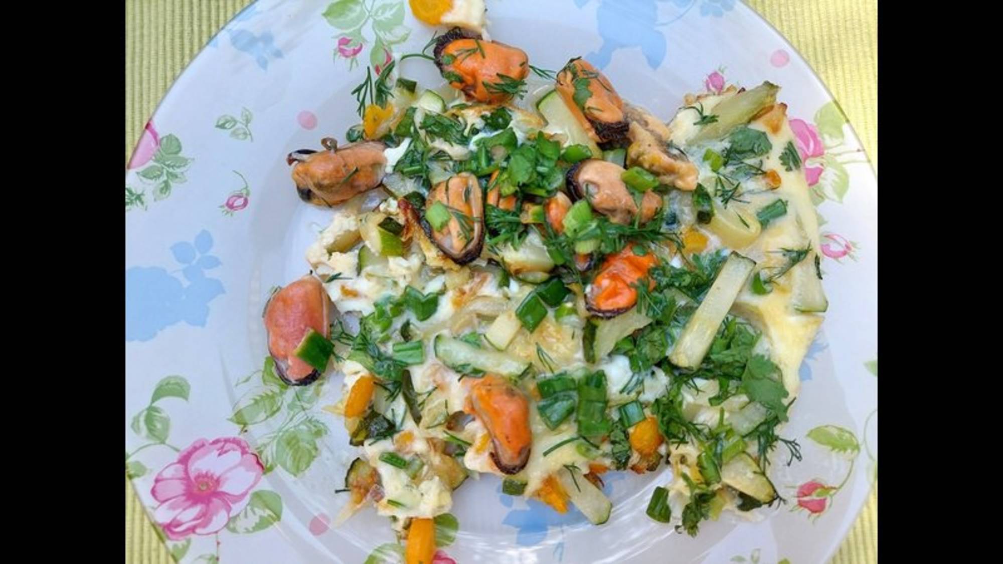 Рецепт завтрака из кабачка с мидиями. Быстро и вкусно.