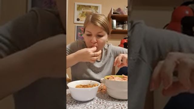 Мукбанг. Жареные креветки в сливочном масле с чесноком!?.
