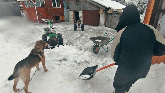 Под конец второго месяца зимы представляем наш очередной трудовой отчёт о том, как мы весёлой компанией чистили снег. На этот раз снег был тяжёлый, и для мотоблоков это был предел их возможностей, чтобы сдвинуть с места очередной сугроб, толкать приходилось аппараты с каждым разом сильнее. Помогла ли новая резина на новом мотоблоке? Немного. Но на деле это особо не сказалось. Поэтому учтите те, кто собирается прикупить себе новые колеса. Основная моя цель - прибавка в скорости , была достигнута. Замеры в транспортировочном вопросе замерим позже, в следующих роликах. Очень удивил меня мой пёс Кузя, своими нападками на овечьи вареги и подушку на которой я катаюсь на телеге. Ну а мы немножко встряхнулись от зимней спячки) Всем мира и добра. группа в ВК: https://vk.com/derevnskiy facebook: facebook.com/groups/2714739295230909/ instagram.com: nikola.village