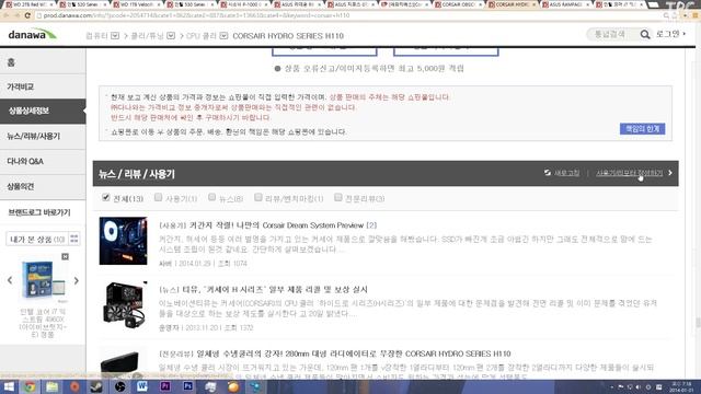 CPU: Intel Core I7 Extreme 4960X http://prod.danawa.com/info/?pcode=2209216&cate1=861&cate2=873&cate3=959&cate4=&keyword=i7+4960x 메모리 (RAM): Corsair Dominator Platinum 32 GB (4x8GB) DDR3 2133MHz CL9 1.5V http://www.11st.co.kr/product/SellerProductDetail.tmall?method=getSellerProductDetail&prdNo=803301281 마더보드: ASUS RAMPAGE IV Black Edition http://prod.danawa.com/info/?pcode=2316153&cate1=861&cate2=875&cate3=968&cate4 #bookmark_product_information GPU: 1. ASUS GeForce GTX 780 TI DC II OC X2 (2way-SLI) http://prod.danawa.com/info/?pcode=2372034&cate1=861&cate2=876&cate3=972&cate4=&keyword=asus+gtx+780+ti 2. ASUS Radeon R9 290X DC II OC X2 (2way-Crossfire X) http://prod.danawa.com/info/?pcode=2402371&cate1=861&cate2=876&cate3=971&cate4=&keyword=asus+r9+290x 케이스: Corsair Obsidian 750D http://prod.danawa.com/info/?pcode=2255657&cate1=861&cate2=879&cate3=990&cate4=&keyword=corsair+750 CPU 쿨러: Corsair H110 http://prod.danawa.com/info/?pcode=2054714&cate1=862&cate2=887&cate3=13663&cate4=&keyword=corsair+h110 파워서플라이: Seasonic P-1000 80-Plus Platinum http://prod.danawa.com/info/?pcode=1609012&cate1=861&cate2=880&cate3=997&cate4=&keyword=seasonic+1000w SSD: Intel 530 Series 240GB SATA III http://prod.danawa.com/info/?pcode=2370126&cate1=861&cate2=32617&cate3=32623&cate4=&keyword=intel%20530 그리고 Intel SRT 기술을 이용해서 가속도를 낼 수 있는 추천 SSD (60 또는 64GB) -ADATA XPG SX900 (64GB) http://prod.danawa.com/info/?pcode=1684811&cate1=861&cate2=32617&cate3=32623&cate4=0 (Intel 520 시리즈 보단 ADATA 가 좋겠네요.) HDD: 1.WD 1TB VelociRaptor (10,000rpm) http://prod.danawa.com/info/?pcode=1762523&cate1=861&cate2=877&cate3=19189&cate4=&keyword=wd+velociraptor 2.WD 2TB Red WD20EFRX (SATA3/64M) X2 (Raid 1) http://prod.danawa.com/info/?pcode=1733057&cate1=861&cate2=877&cate3=977&cate4=&keyword=wd%20red%202tb GeForce 그래픽카드를 선택하셨으면: 대략 5,920,730 원 AMD 그래픽카드를 선택하셨으면: 대략 5,656,950 원