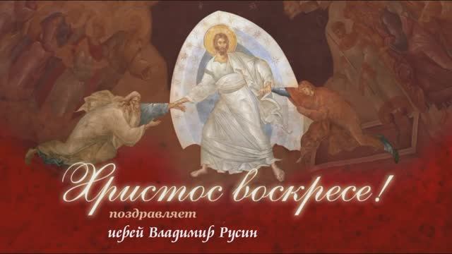Друзья! Со Светлым праздником Воскресения Христова вас поздравляет иерей Владимир Русин – настоятель двух храмов: Покрова Пресвятой Богородицы в селе Кунье и великомученика Димитрия Солунского села Средние Апочки Горшеченского района Курской области, церковный историк, краевед, член Союза журналистов России, автор поэтических сборников и ряда книг серии «Православное краеведение», лауреат национальной литературной премии «Писатель года – 2021».