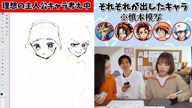 今回は自分達の好きなキャラクターを合体させて キメラ主人公&ライバルキャラを作ってみました! 意外といいキャラクター生まれたけど…ここでしか 見せれないキャラが誕生しました…。 ※キャラクターのイラストは全て慎本先生の模写です。 ▼今回描いたキャラ▼ 竈門炭治郎/鬼滅の刃 ルフィ/ONE PIECE 越前リョーマ/テニスの王子様 武藤遊戯/遊戯王 麻倉葉/シャーマンキング うちはサスケ/NARUTO ヒソカ/HUNTER×HUNTER 黒尾鉄朗/ハイキュー!! 全部ステキなキャラクターなので 知らない人は是非作品読んでみてねー! プロ漫画家慎本真(しんもとしん)が 絵が上手くなりたい人 漫画を描いてみたい人にむけて 【描き方】や【絵が上手くなる方法】 【イラストメイキング】などを紹介します。 ▽SNS▽ 慎本Twitter:https://twitter.com/shinmotoshindy/ 慎本インスタ:https://www.instagram.com/shinmoto_shin/ エス君Twitter:https://twitter.com/ss_manga_diary/ ▽こちらの動画もオススメ▽ 簡単に絵が上手くなる方法https://youtu.be/2HKWdHw7kvA 服のシワの描き方https://youtu.be/9hP2ZTXS0XU 手の描き方https://youtu.be/z5pKUrxi2mA 体の描き方https://youtu.be/A3fmnPufAyA 顔の描き方https://youtu.be/HxA1yG5wyVQ 20年間のイラスト成長記録https://youtu.be/W4n7eACvzjI ▽描いてみた系▽ 1ページいっぱいに春服女の子https://youtu.be/3fWRVAzxBvk 1ページいっぱいに柄服男の子https://youtu.be/aD7zMOAkTEI 1ページいっぱいにゴスロリ女の子https://youtu.be/MKkn3pQYGEM *普段漫画を描くのに使っている道具 iPad Pro12.9インチ(第3世代) Apple Pencil(第2世代) *使用ソフト CLIP STUDIO PAINT EX *音源・効果音使用元* DOVA-SYNDROME http://dova-s.jp/ 効果音ラボ https://soundeffect-lab.info/ *OP・EDアニメーション:イナゾーギミック【Twitter@inazzo_ipadpro】 *OP:ジングル素材05 Track by G-MIYA *ED:ブリキの汽車に乗って Track by KK *YouTube関係のお問い合わせはこちら info@grove.tokyo 今後の参考の為に 質問や感想などコメント欄で教えてもらえると嬉しいです! #慎本真 #イラスト #絵 〜〜〜〜〜〜〜〜〜〜〜〜〜〜〜 ▽慎本真のこと▽ 2009年に白泉社LaLaでデビューして以来、 色々なところで漫画描かせていただいてます。 ▼ただいま連載中▼ 【不祥事アイドル】 【推しが我が家にやってきた!】 【好きです、となりのお兄ちゃん。】 ▽単行本▽(最終更新2021年11月) 「不祥事アイドル」1〜4巻以下続刊(白泉社) 「推しが我が家にやってきた!」1〜5巻以下続刊(フレックスコミックス) 「好きです、となりのお兄ちゃん。」1~4巻以下続刊(フレックスコミックス) 「先輩!今から告ります!」全5巻(講談社) 「SSB―超青春姉弟s―」全11巻(フレックスコミックス) 「カップルのイチャイチャっぽいのっ!」(一迅社) 「君といただきます」(白泉社) 「アクセス(誉田哲也原作/新潮文庫刊)」全2巻(白泉社) 「刀剣乱舞-ONLINE- コミックアンソロジー ~刀剣男士迅雷~ 」口絵1P寄稿(DNAメディアコミックス) 「刀剣乱舞-ONLINE-アンソロジー~本陣~」口絵1P寄稿(KADOKAWA) ▽他過去の色々なお仕事▽ TV番組「土曜はナニする!?」10分ティーチャー出演 wings「エッセイリレー漫画」1ページ サイバード「イケメンバンパイア2周年記念マンガ」カラー漫画2ページ 月刊少年チャンピオン「俺たちのヤンキーグラフィティ」口絵1枚 TV番組「わがままマンガ」漫画で参加 週刊少年マガジン「化物画廊(バケモノギャラリ)」口絵1枚 ビビビット「漫画家に聞く!私のキャリアが動いた瞬間」エッセイ1ページ ネット番組「SKEのおしゃべりマンガサロン」ゲスト出演 nicola(ニコラ)「ニコモオーデ合格物語」漫画3ページ 花丸漫画vol.3「親友がちょっとヤバい」ストーリ漫画16ページ 月刊シルフ「本日ハ、馬ナリ。」1話~6話連載 雪印メグミルク『重ねドルチェ』HP挿絵イラスト など ▽web連載ページ試し読みなど▽ 「推しが我が家にやってきた!」https://comic-polaris.jp/oshiwaga/ 「好きです、となりのお兄ちゃん。」https://comic-polaris.jp/sukiani/ 「SSBー超青春姉弟sー」https://comic-polaris.jp/superseisyun/ 〜〜〜〜〜〜〜〜〜〜〜〜〜〜〜