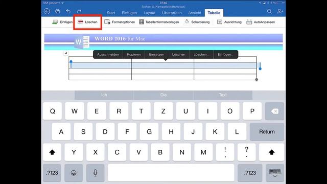 Word für iPad: Tabellen