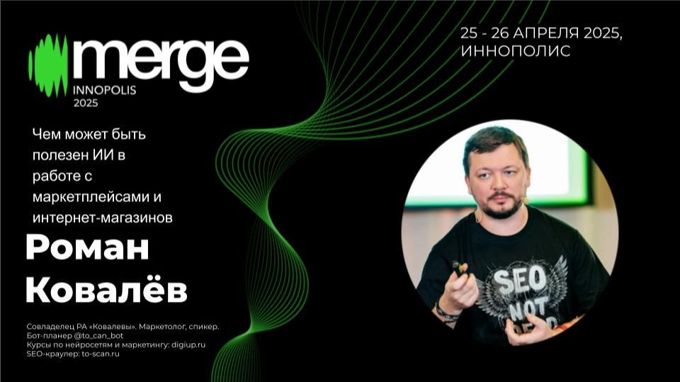 Генерация описаний товаров с SEO-ключами. Автоматизация обработки отзывов и вопросов покупателей. Создание визуалов для карточек: удаление фона, инфографика, видеообложки. Прогнозирование потребностей покупателей и подбор релевантных предложений. Автоматизация рекламных кампаний и управления бюджетом. О спикере SEO-специалист ﹥16 лет, интернет-маркетолог ﹥13 лет Совладелец рекламного агентства «Ковалевы», на рынке 17 лет Основатель «Digi Up» — курсы и статьи о нейросетях для маркетологов Руководитель рабочей группы и SEO-кластера в ARDA