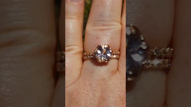 Morganite Rose Gold Peony Engagement Ring and Wedding Band, Bridal Set