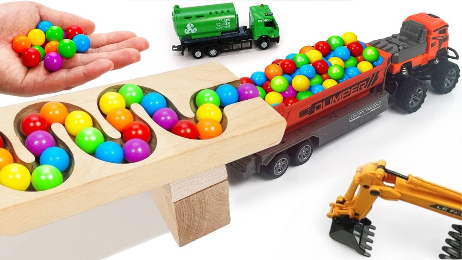 Гонка шариков волновой склон. Машинки для детей Мусоровоз Самосвал Скорая помощь Экскаватор Трактор
