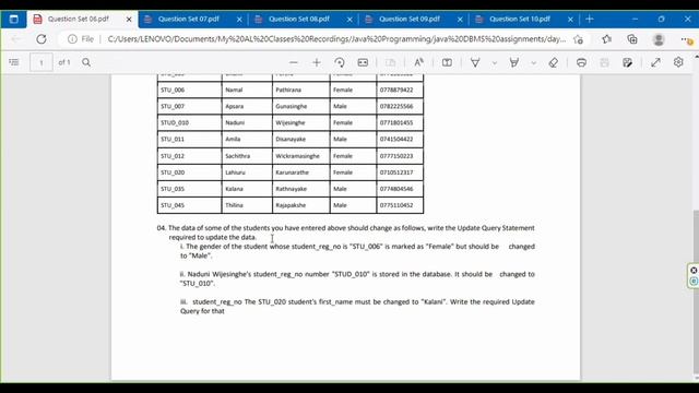 Data Base Task 06 |Write an Update Query Statement| 1st Year | Java Institute| Vihandu amarasinghe