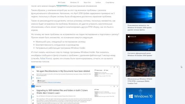 Обновление Windows 10 October 2018 Update на паузе. ► Текстовая версия: https://msreview.net/windows-10/1397-microsoft-otzyvaet-obnovlenie-windows-10-october-2018-update-opyat.html ► WP-Seven: https://wp-seven.ru/stat-i/novosti/polzovateli-soobshhali-ob-udalenii-fajlov-eshhe-za-tri-mesyatsa-do-reliza-1809.html ► Community: https://thecommunity.ru/microsoft/windows/windows10/6213-microsoft-vremenno-prekratila-rasprostranenie-windows-10-october-2018-update.html ► TrashBox: https://trashbox.ru/link/how-to-restore-deleted-files-in-windows-10-october-2018-update ► Виджеты: https://www.youtube.com/watch?v=unKofoJ8QIg ► Живые обои: https://www.youtube.com/watch?v=mmZssEPUo-4 ------------------------------------------------------------------------------------------------- Реквизиты для поддержки канала: ► Донат: http://www.donationalerts.ru/r/msreview ► QIWI: +380661002249 ► Webmoney: R339347857878 Z204354883252 ► Карта: 4731 1856 1215 0190 ► Patreon: https://www.patreon.com/msreviewnet -------------------------------------------------------------------------------------------------- MSReview: https://msreview.net ВКонтакте: https://vk.com/msreviewnet Telegram: https://t.me/msreviewnet Facebook: https://www.facebook.com/msreviewnet Twitter: https://twitter.com/msreviewnet Instagram: https://www.instagram.com/msreviewnet Steam: https://steamcommunity.com/groups/msreviewnet YouTube: https://www.youtube.com/c/msreviewnet -------------------------------------------------------------------------------------------------- ► E-mail: msreviewnet@gmail.com
