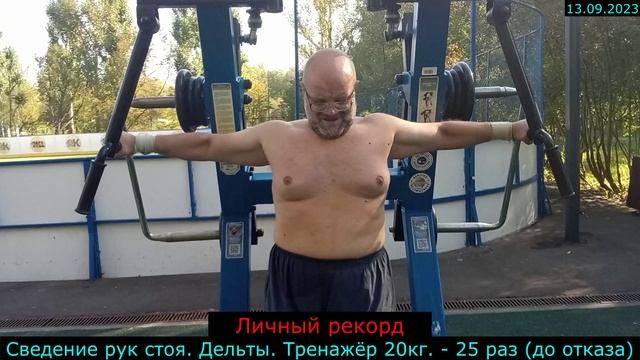 13.09.2023 - Сведение рук стоя. Дельты. Тренажёр 20кг. - 25 раз (до отказа)