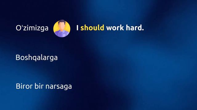 Ingliz tili grammatikasini oʻrganishda davom etamiz! 😎 Ushbu darsimizda siz "Should" modal feʼli haqida tushunchaga ega boʻlasiz. Bizni ijtimoiy tarmoqlarda kuzating: → Telegram: https://t.me/engdunyo → Instagram: https://www.instagram.com/engdunyo/ → Facebook : https://www.facebook.com/engdunyo Eslatib oʻtamiz, Ingliz tili dunyosi kanalida siz bepul va sifatli videoroliklarni tomosha qilsangiz boʻladi. 😎 Foydali platformalar: → Lugʻat bilan ishlash uchun: https://dictionary.cambridge.org/ru/ → IELTSni bepul oʻrganish uchun: https://ieltsonlinetests.com/ → Ingliz tilini mustaqil oʻrganish uchun: https://ru.duolingo.com/