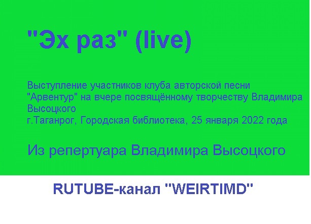 Из репертуара Владимира Высоцкого Выступление участников клуба авторской песни "Арвентур" на вчере посвящённому творчеству Владимира Высоцкого г.Таганрог, Городская библиотека, 25 января 2022 года