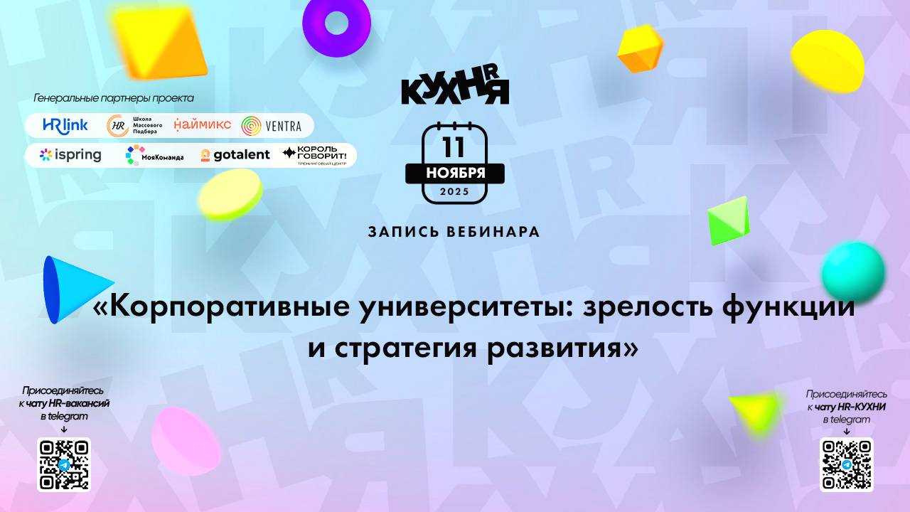 Присоединяйтесь к чатам и каналам HR-КУХНИ в телеграм: - Основной чат HR-КУХНИ в телеграм - https://t.me/+tYgAH0PgPQVkOWIy - Канал HR вакансий в телеграм - https://t.me/+CMNAN2u1hjo3M2Ri - Канал HR-EVENTS в телеграм - https://t.me/hr_kitchen - Канал HR JOURNAL в телеграм - https://t.me/hrkitchenjournal Полезные ссылки: - Каталог HR решений - https://hrkitchen.ru/exhibition - График конференций, бесплатных вебинаров, а также бесплатные курсы – https://hrkitchen.ru/ - Стать спикером HR-КУХНИ - https://hrkitchen.ru/speakers - Подписаться на полезную e-mail рассылку от HR-КУХНИ (новости, гайды, чек-листы, подарки от партнеров) - https://hrkitchen.ru/subscribe