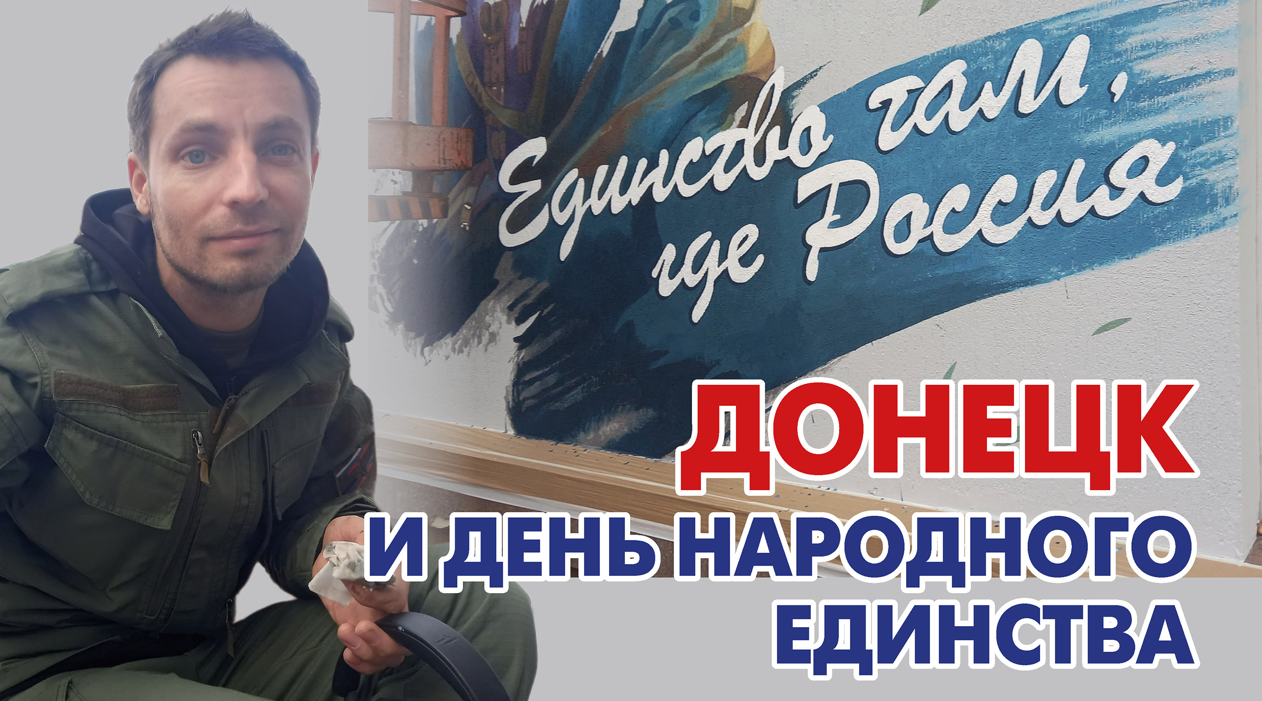 В День народного единства в Донецке не будет массовых мероприятий: город постоянно обстреливают. Но в столице ДНР люди будут отмечать этот важнейший для них праздник. И уже сегодня в центре Донецка молодой художник Владислав Степной создает мурал «Единство там, где Россия». – Это послание от молодежи ДНР. И еще одна возможность создать хорошее настроение людям, несмотря на постоянные обстрелы, – отмечает он. Это уже не первая работа художника, который постоянно живет в Донецке и разделяет с городом все тяготы прифронтовой жизни. А еще Владислав охотно дает возможность другим поучаствовать в рисовании своих картин. – Вот вчера подошел дворник и попросил тоже что-то нарисовать. Я ему дал кисточку, и он нарисовал сердечко. Оно останется на мурале и будет напоминать дворнику о том, что он тоже принимал участие в его создании, – говорит Степной.#Донецк #единство #художник