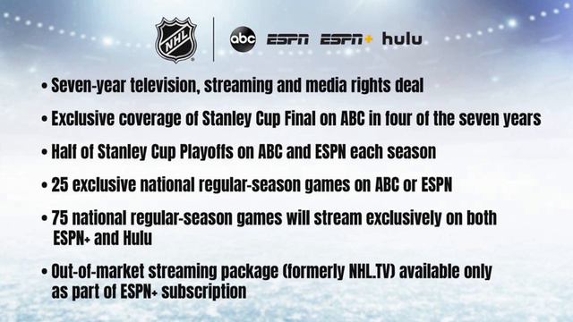 The NHL and ESPN have agreed to a 7 year deal making ESPN one of the networks with TV rights to the league #NHL #ESPN Ways to support the Channel: Dono's to Support: https://streamlabs.com/offthewallhockey Merch now available: https://teespring.com/stores/off-the-wall-hockey-shop Patreon: https://www.patreon.com/offthewallhockey Join channel memberships to get access to perks: https://www.youtube.com/channel/UCmrdAHJCX3pN-riT5gMrt7g/join Follow on Social Media: Discord: https://discordapp.com/invite/ytgyRnc Facebook: https://www.facebook.com/offthewallhockey/ Twitter: https://twitter.com/offthewallhock SteelFlyers Page: https://steelflyers.com/links/off-the-wall-hockey/ Huge thank you to my Patrons: Matt Danny Mike+Julie 100% Dork Musheg Thank You to Superstar Members: Danny Jaillet, יוסי יושע, and Joe Lane