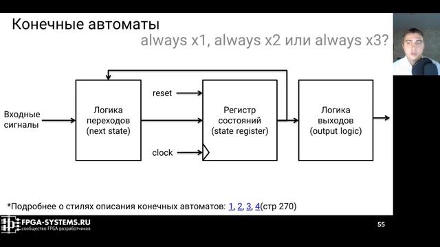 Презентация примера графической игры с параллельно вычисляемыми спрайтами и конечными автоматами для сценария игры. Демонстрация запуска игры на плате Digilent Basys3 с Xilinx FPGA Artix-7. Обсуждение модификации игры с помощью добавления новых спрайтов и изменения сценария. Михаил Коробков, fpga-systems.ru Это выступление подготовлено для "Сколковской школы цифрового синтеза на Verilog", прошедшей в рамках выставки Чип-Экспо 2020 Презентация: https://fpga-systems.ru/share/chip_expo_2020/dds_chipexpo2020_fpga-systems_slides.pdf Комментарии к слайдам: https://fpga-systems.ru/share/chip_expo_2020/dds_chipexpo2020_fpga-systems_comments.pdf #verilog #vga #xilinx