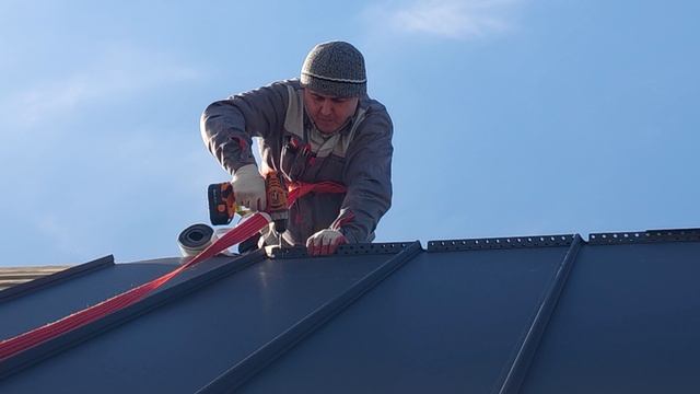 Монтаж опор под конёк Grand Line Клик-фальц Про: работы на скате с уклоном 45°!