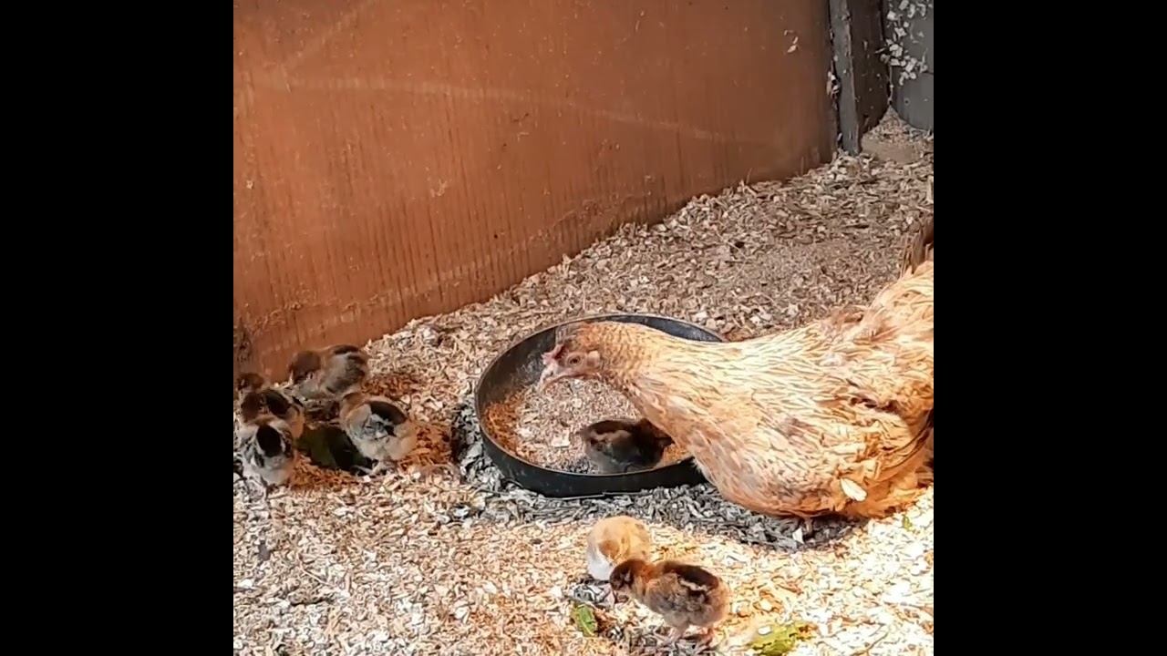 Заботливая квочка показывает малышам как нужно есть травку. Малышам Кучинской юбилейной 10 дней.