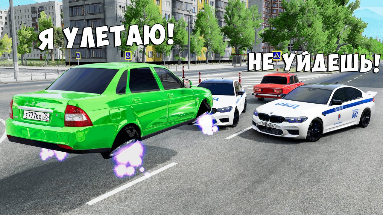 ОБМАНУЛ ГЛУПЫХ КОПОВ И УГНАЛ ЛЕТАЮЩУЮ ПРИОРУ ! БИТВА ВОРОВ ПРОТИВ КОПОВ В BEAMNG DRIVE!
