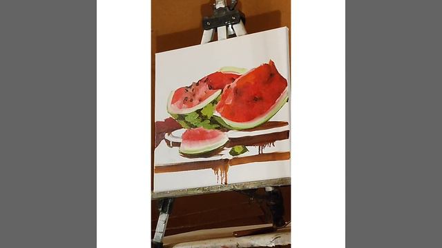 картина маслом на холсте .натюрморт арбуз.процесс написания картины с натуры