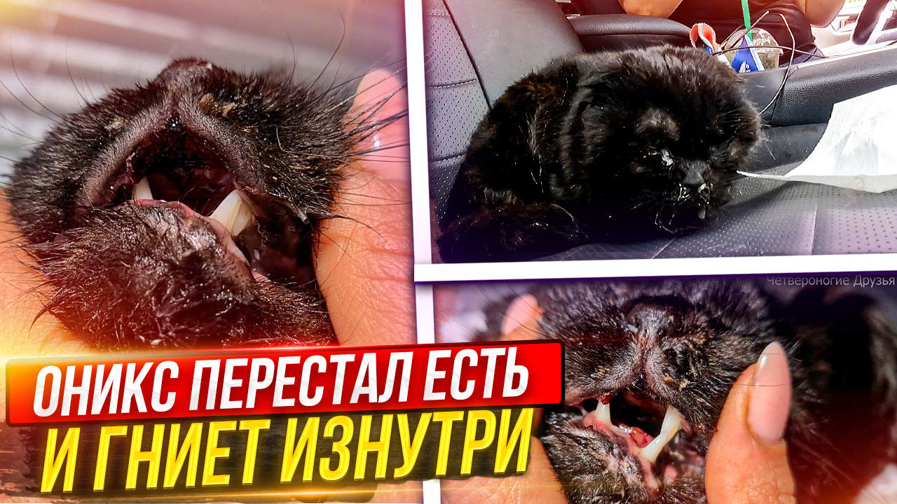 Оникс, которого сбила машина похудел, во рту раны, гной. Ему очень плохо. Ставим капельницы...