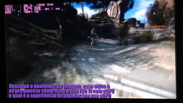 Pessoal, Agora sim! Não senti grande diferença no gráfico médium pro high, mas a diferença de fps foi absurda! Olha como ficou bom o adaptador de placa de video externa para laptop (placa de video de desktop). Eu não gravei a tela, porque o jogo perde qualidade e meu intuito era mostrar a experiencia que a eGPU esta me dando como jogador e qualidade que eu estou conseguindo extrair desse adaptador. Desculpa ai a imagem e o monitor velho rsrs Notebook LG R590 5700 Processador Intel i7 (primeira geração) 6 Gb de RAM Placa externa (Desktop): MSI Nvidia GTX 750 Ti Deep Space de Audionautix está licenciada sob uma licença Creative Commons Attribution (https://creativecommons.org/licenses/by/4.0/) Artista: http://audionautix.com/