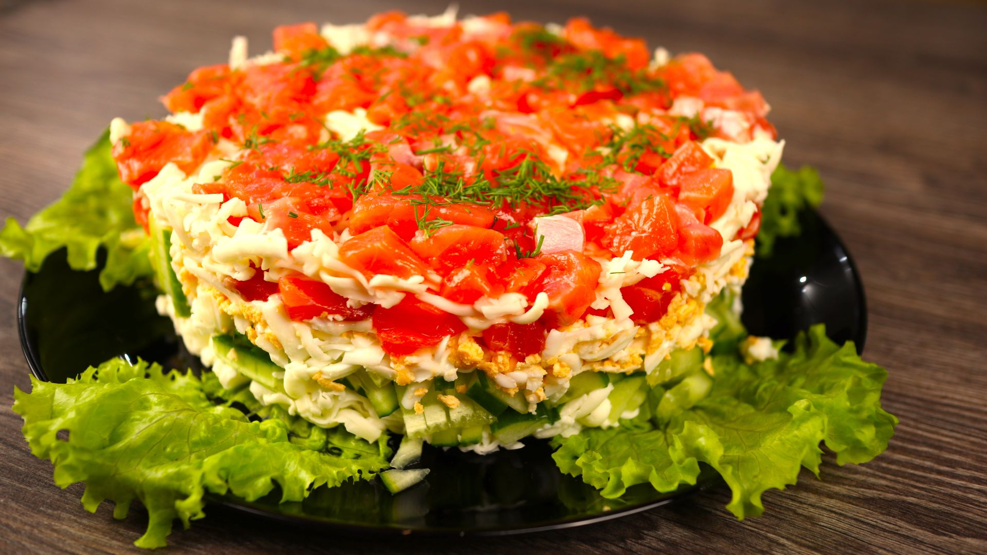 Праздничный салат «Женская слабость» с красной рыбой: лёгкий, слоёный, беспроигрышный рецепт
