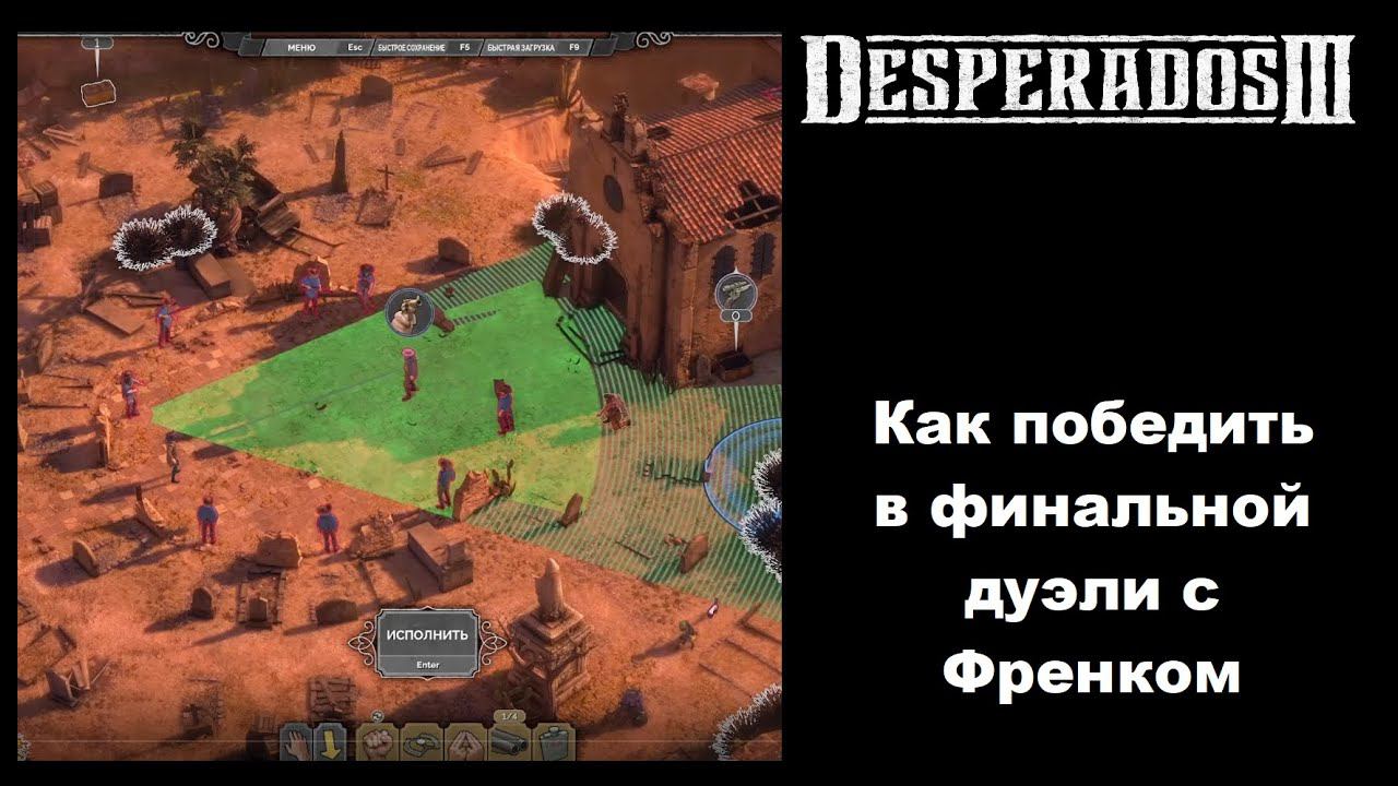 В этом видео показываю, как расположить героев, чтобы выйти победителем из финальной дуэли с Френком в Desperados III во время 16 задания "Старый и новый". Поддержите мой Telegram-канал автора о видеоиграх и кино: https://t.me/spacewolfblog Также вы можете прислать свой донат сюда: https://www.donationalerts.com/r/spacewolf_68
