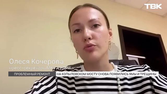 Копыловский мост трещит по швам На новом асфальте через неделю появились ямы и трещины. Управление дорог Красноярска намерено судиться с подрядчиком, который выполнял работы. Почему новая дорога быстро начала разваливаться? ТВК