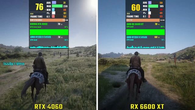NVIDIA RTX 4060 vs RX 6600 XT | Test in 5 Games 1440p Ultra Benchmarks Amazon Affiliate Link {US} ✅ NVIDIA RTX 4060 Newegg :- https://newegg.io/nc339d2d6d Amazon :- https://amzn.to/468vdYd ✅ AMD RX 6600 XT Newegg :- https://bit.ly/3K9iCeS Amazon :- https://amzn.to/3xlaiRo ✅ AMD RYZEN 9 5950X Newegg :- https://newegg.io/nc4a5a3021 Amazon :- https://amzn.to/3TzdFOY ✅ MY PC Specs ? AMD CPU : https://amzn.to/3dzDpGs ? NVIDIA GPU : https://amzn.to/3wnklUm ? G.SKILL RAM : https://amzn.to/2PyaqL5 ? NVME SSD : https://amzn.to/3sPKN6W ? LIQUID COOLER : https://amzn.to/3rOh8tE ? MOTHERBOARD : https://amzn.to/3cMIBr3 ? POWER SUPPLY : https://amzn.to/3ukNcaa ? PC CABINET : https://amzn.to/3rMnDgw ✅ RTX 4060 vs RX 6600 XT Gaming Benchmarks 00:00 - Cyberpunk 2077 01:37 - Assassin's Creed Valhalla 03:04 - Red Dead Redemption 2 04:36 - Watch Dogs Legion 06:08 - Horizon Zero Dawn ✅ Test Specs CPU : AMD RYZEN 9 5950X RAM : 2x16GB DDR4 3600MHz G.Skill SSD : Samsung 980 Pro 1TB #RTX4060_vs_RX6600XT #RTX4060 #MikeBenchmark