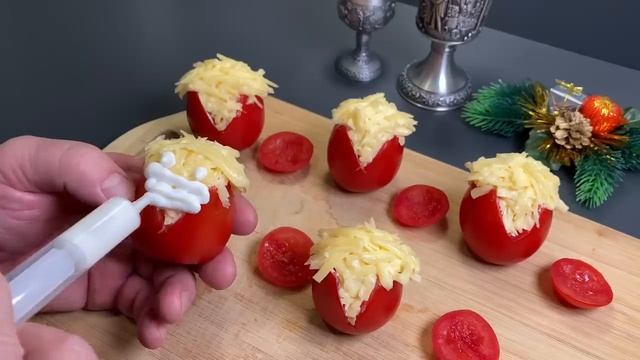 Поддержите пожалуйста канал, мы стараемся для Вас , что бы Вам было интересно ,смешно и уютно! Реквизиты ниже в описании .Заранее благодарны Вам! СБЕР. 2202 2032 4086 8523 ТИНЬКОФФ 2200 7007 3056 0918 5 помидоров. Удалите мякоть из помидоров. Консервированная печень трески (230 гр). Слейте масло. Столовая ложка лимонного сока. 2 вареных яйца. Оливки без косточек 100-150 г. Пучок укропа. Пучок зеленого лука. щепотка перца. Рыбий жир с лимонным соком. Хорошо перемешать. Начинить помидоры. Приятного аппетита. Ингредиенты: 5 небольших помидоров Срежьте шляпки помидоров. Вырезаем мякоть. Сделайте треугольный разрез. 150 грамм сыра. 2 зубчика чеснока. 2 столовые ложки майонеза. Наполните шприц майонезом. Черный перец горошком. - 4 яйца - 2-3 крупных помидора - Соль, перец по вкусу - 5 зубчиков чеснока - 3 столовые ложки майонеза - сыр любой вкусный 50 гр.