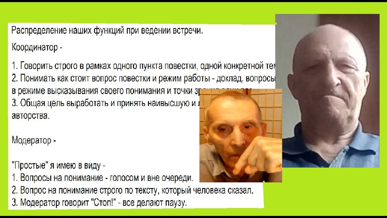 Громыко Г.О.-Левин В.Н. - О правилах ведения коллективных встреч. Мы упомянули в разговоре - Телеграм-группа Действующая модель нового социума - https://t.me/+AsDleWWhqRg1NzAy Корневой каталог - участники https://docs.google.com/document/d/1bxHtHm0rm1f-s9lfFMCtMwyx66th47h2UGAZ-QbH0kw/edit?usp=drivesdk Анкета новичка - https://docs.google.com/forms/d/1gL-diE_s1zqEthesa4gxmLbGo__uFkwHz_HAyE40clM/edit?usp=drivesdk Форма оценки вкладов в общее дело - https://forms.gle/eTpdrpDRMz2bE5Nx6 Таблица - результаты оценки вкладов - https://docs.google.com/spreadsheets/d/1oK5tL_cck7XwUVZ48iF9UZ-mPakkiI1OGHeFQagE1kE/edit?usp=sharing === Рабочие проектные группы - НИР-КР-Образование в новом социуме https://t.me/+gMqobUr3o1xiZTEy НИР-КР-Управление новым социумом https://t.me/+9kakzpCdXzdiYzli НИР-КР-Экономика нового социума https://t.me/+d8ym917D-xFlMGQy Видео-книга "НИР - Действующая модель нового социума" - оглавление с прямыми ссылками на видео - https://docs.google.com/document/d/1TZ9_Hw6BdtSUjFmmdXtdwmyUoGnMcEOHk1ncKHmAenI/edit?usp=sharing === ЭкоСеть - конструкция, смысл, критерии, экспертиза, функции, инструменты, почта, связи 7:14 - https://youtu.be/rOVjvHF5rIo Краткое знакомство с ЭкоСетью - 18-08-2022 Обзор ЭкоСети сделан специально для тех, кто о ней ничего не знает, чтобы зритель мог получить исходную инфу для подумать "а оно мне надо?" и, возможно, сделать следующий шаг для более подробного знакомства, - почти безмолвно меня слушал Петренко Пётр Валентинович. 18:07 - https://youtu.be/YjP1yfvXYWo === Связаться с Громыко Григорий Олегович можно так - Телеграм - https://t.me/GrigorijGromyko ВКонтакте - https://vk.com/id23067191 или Фэйсбук - https://www.facebook.com/grigorij.gromyko === Громыко Г.О. работает по теме Воспитание через взаимное обучение в одноимённых группах - https://t.me/+natvdoOosMdmZWIy https://vk.com/club21598670 https://www.facebook.com/groups/281735708668781 ===