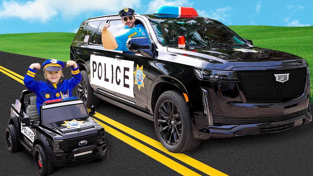 Крис катается на игрушечной полицейской машине! Видео от Влада и Ники!