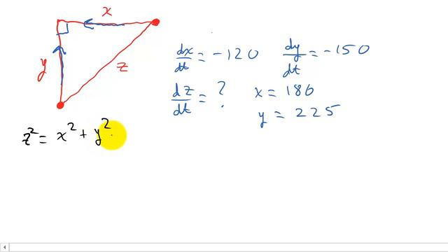 This video shows how to solve a related rate problem. How fast is the distance between two planes decreasing.