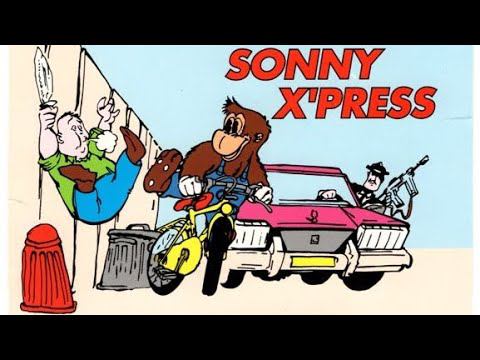 Sonny Xpress! Sonny Xpress is a mail-delivery action game starring the titular Sonny, a monkey who rides a moped. The player controls Sonny as he rides around town delivering packages. To do so, he must first go to the post office and pick up a package, then check the map for his destination, and then finally ride there and make the delivery before starting over again. He must also be mindful of his surroundings, as there are dangerous cars and many other obstacles, and one hit will wreck his ride. Delivering packages earns money, which must be deposited in the bank in order to save it. Money can also be used to refuel the moped, and also to pay traffic fines at the police office. Ignoring traffic signs such as red lights and stop signs will land Sonny with a stiff fine that must be repaid.