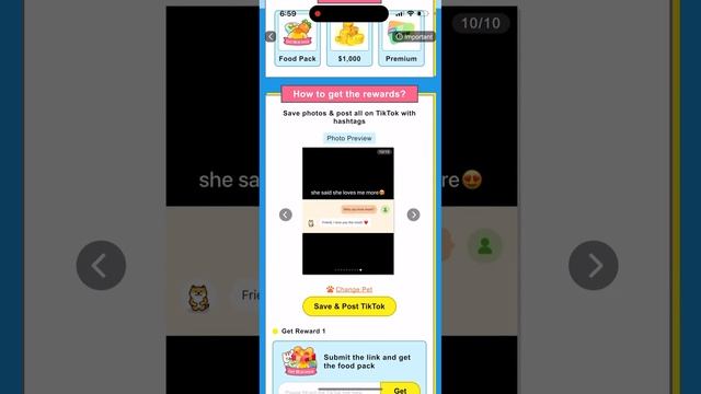 How to get pet rewards in Widgetable app by sharing on TikTok?