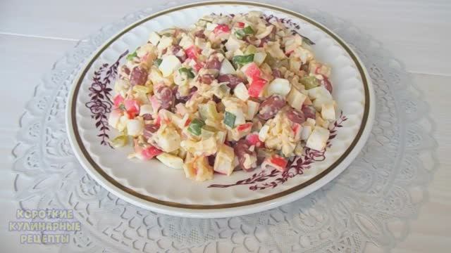 Салат из крабовых палочек с красной консервированной фасолью и сыром