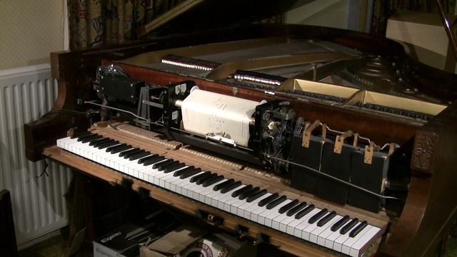 Alfred Cortot's Duo-Art roll of Sous les palmier, Albéniz Cantos de España Op 232 No 3, published in 1892. Duo-Art roll 7102 was issued in February 1927. Played on my Weber model 12 Duo-Art grand. The video ahows the 'overhead action' Duo-Art grand installation where the player action sits over the keys and activates the piano action directly so the keys don't move. This model was introduced in the early-mid 1920s in London and seems to have sold reasonably well.