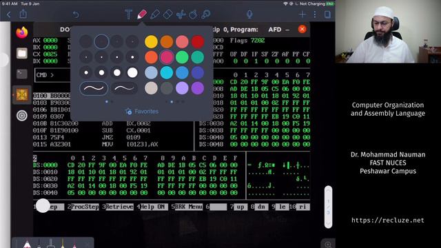 Part of the course Computer Organization and Assembly Language offered in Urdu. These are recordings from my live class so they are detailed and include Q&A from students. This adds a lot to the value of the content. See resources (including needed assembler and debugger) here: https://github.com/recluze/assembly-lang-course We use a practice-oriented approach towards Assembly. Heavily inspired by the VU course but updated to add some useful materials (and skipped some stuff that I did not find necessary). See my channel's intro for a brief discussion on how to get the best out of my courses.