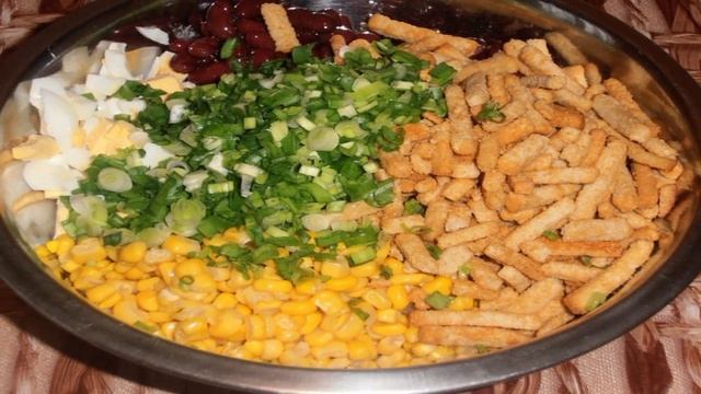 Оригинальный салат из фасоли и яиц станет прекрасной альтернативой оливье или винегрету на новогоднем столе. Рекомендую в преддверии праздников записать рецепт приготовления салата из фасоли и яиц! Ингредиенты: Майонез150-200 грамм, Зеленый лук1 пучок, Банка консервированной фасоли1 штука, Банка консервированной кукурузы1 штука, Сухарики150 грамм, Яйца5 штук, СпецииПо вкусу, Благодарим за просмотр! Подписывайтесь на канал🍕 Поделитесь своим мнениенм о рецепте в комментариях!