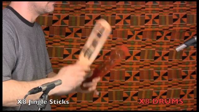 http://www.X8Drums.com The X8 Drums Tambourine Jingle Stick is made of solid mahogany wood six sets of jingles. Great tones when played in a set of 2.