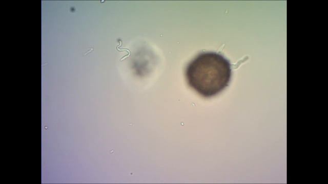 Раковина яйцевидная, без шейки. В верхней трети раковинки две добавочные поры. Увел. 400х вода из болота.