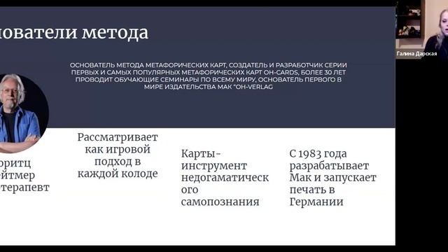 Маковые истории - это о себе через метафору ассоциативных карт . Истории тебя , которые прошли и оставили след . Истории, которые держат твои воспоминания в чувствах и памяти . Истории , которые еще живы в тебе и требуют переосознания . Знакомство с картами МАК -это встреча с образами себя в картинках . Это психологический инструмент работы через образы и ассоциации со своей памятью и чувствами . На открытой встречей мы познакомились с особенностью МАК, их историей и интересными фактами о них. А также Практика ! Метафорические ассоциативные карты -это инструмент работы , но во главе стоит методика самого МАК оператора. «Не пытайтесь инструментом заменить метод – и вас не постигнет разочарование» Метафорические ассоциативные карты – надежный помощник для специалиста, работающего с людьми. Метафорические ассоциативные карты – в равной степени хорошо работают как в прояснении запроса, так и в терапевтическом запросе. Метафорические ассоциативные карты – используется от эмоционального проживания до интимных тренингов и построения структур взаимодействия. Курс для тех, кому интересно познавать через творческие подходы, Для тех, кто знаком с МАК и хочет углубиться и заниматься профессионально Для тех, кто хочет расширить свои возможности и приобрести новый инструмент. https://taplink.cc/centrdaara/p/e2f3b8/