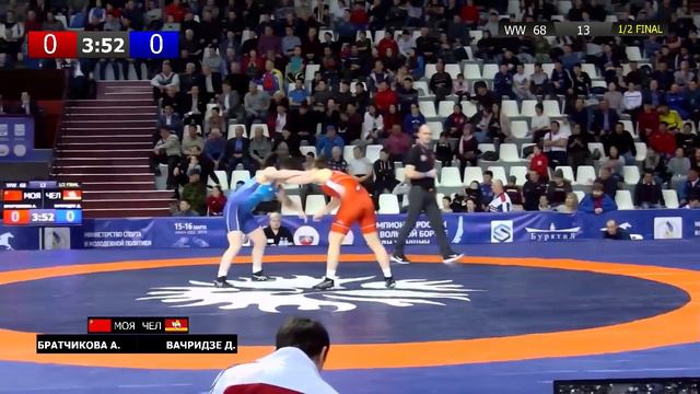 ЧР по вольной борьбе среди женщин. Братчикова А. (МОЯ) и Вачридзе Д.(ЧЕЛ) - 1/2 финала, 68кг