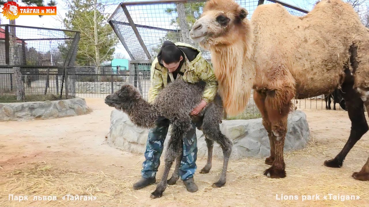 ч.1 Беременная верблюдица Марго до последнего дня перед родами кормила своего сына, родившегося два года назад. Потому рожденный верблюжонок стал неожиданностью) Верблюжонок родился не самый сильный, потому, подождав некоторое время, ему помогли киперы Тайгана подняться на ножки, а директор помог ему покушать маминого молочка. Родственников временно переселили в другие вольеры, потому что для новорожденного верблюжонка они могут представлять опасность. Ютуб -https://www.youtube.com/channel/UCFQLMehakM5R2vJ_QPuWsRA