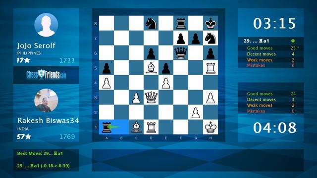 Chess Game Analysis: Rakesh Biswas34 - JoJo Serolf : 1-0 (By ChessFriends.com)