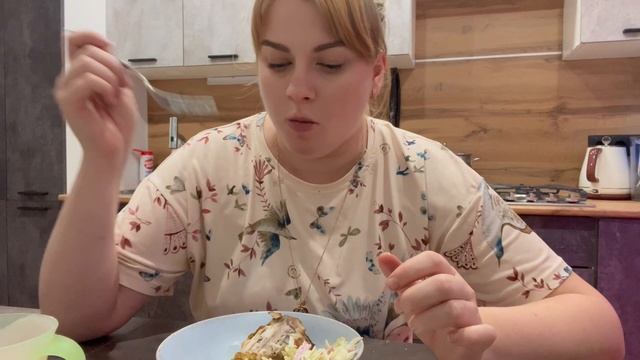 Мукбанг/ ужин / доедаем все что есть дома / У меня салат и кура /