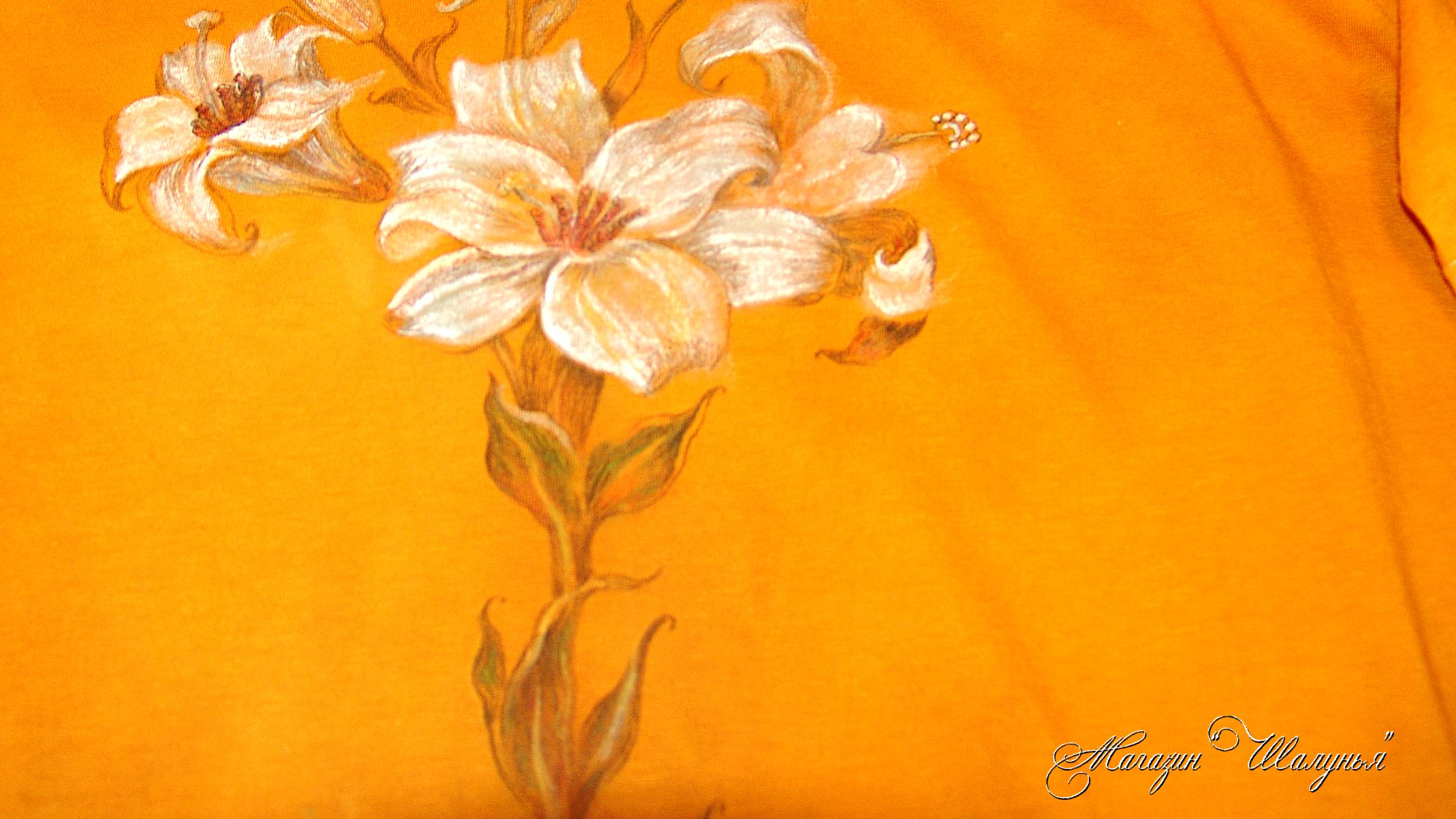 Футболка женская с ручной росписью "Лилии" хлопок на заказ